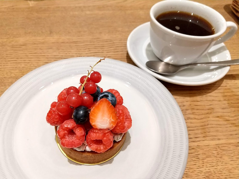 ランチを注文すると、500円以上のデザートが100円引きで付けられると聞いて、ベリーたっぷりのタルトを注文してしまいました。サクサク食感のタルトに甘酸っぱいベリーがたっぷり乗っていて美味。因みに、珈琲はプラス200円で付けられますよ。