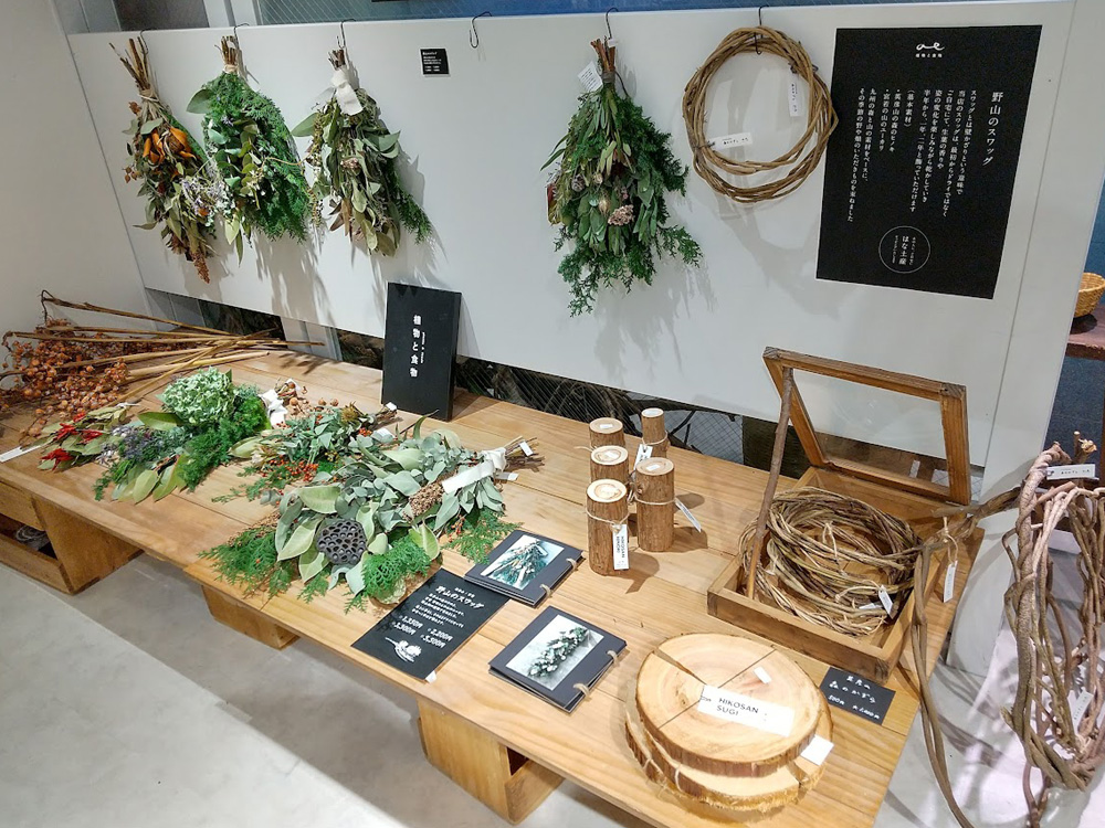 こちらのスワッグは、ドライではなく生の状態で販売されているとのことでした。乾いていく過程も楽しめそうで素敵ですよね。