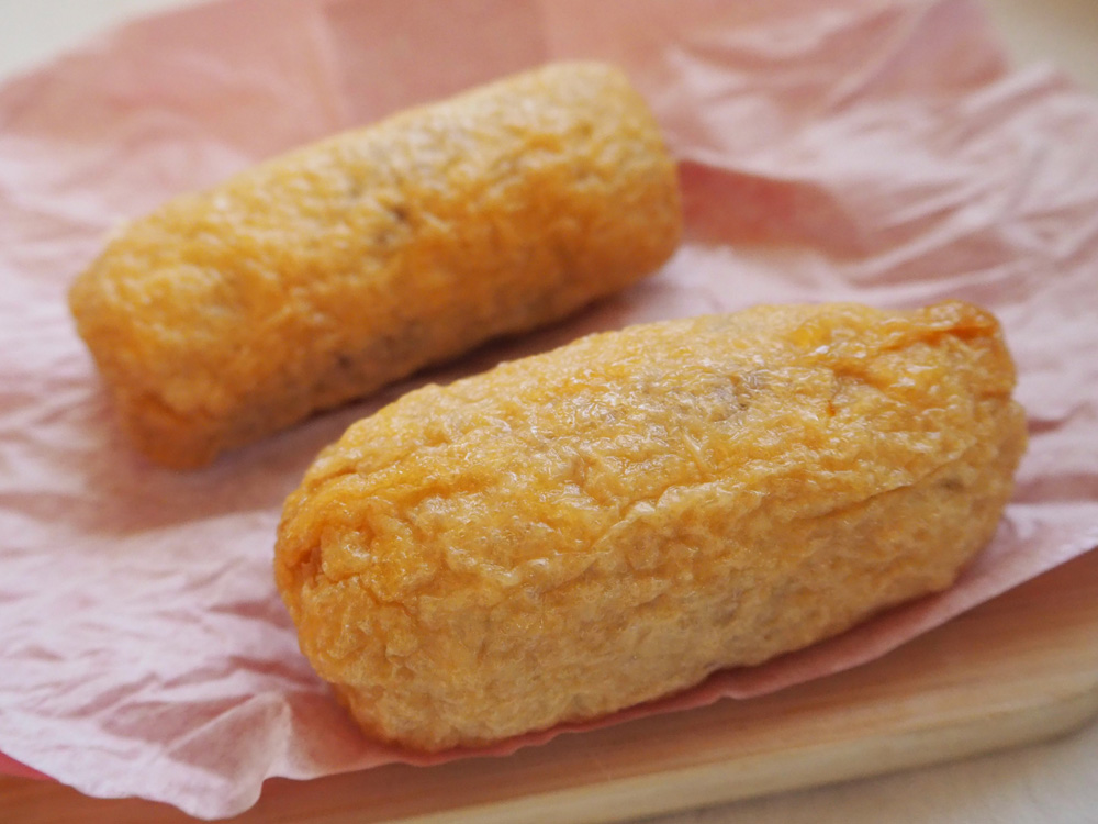 木曜と土曜の11時半からは、大濠テラスでも人気の「旅するおいなり」が販売されますよ。「福岡県英彦山 りんご蜂蜜おいなり」(赤色)には、半生ドライのリンゴが入っていて、シャキシャキ食感で美味。「長崎県雲仙 じてんしゃおいなり」(白色)は、いりこと有機野菜がたっぷり入ってました。キャンディのような見た目も可愛いですよね。