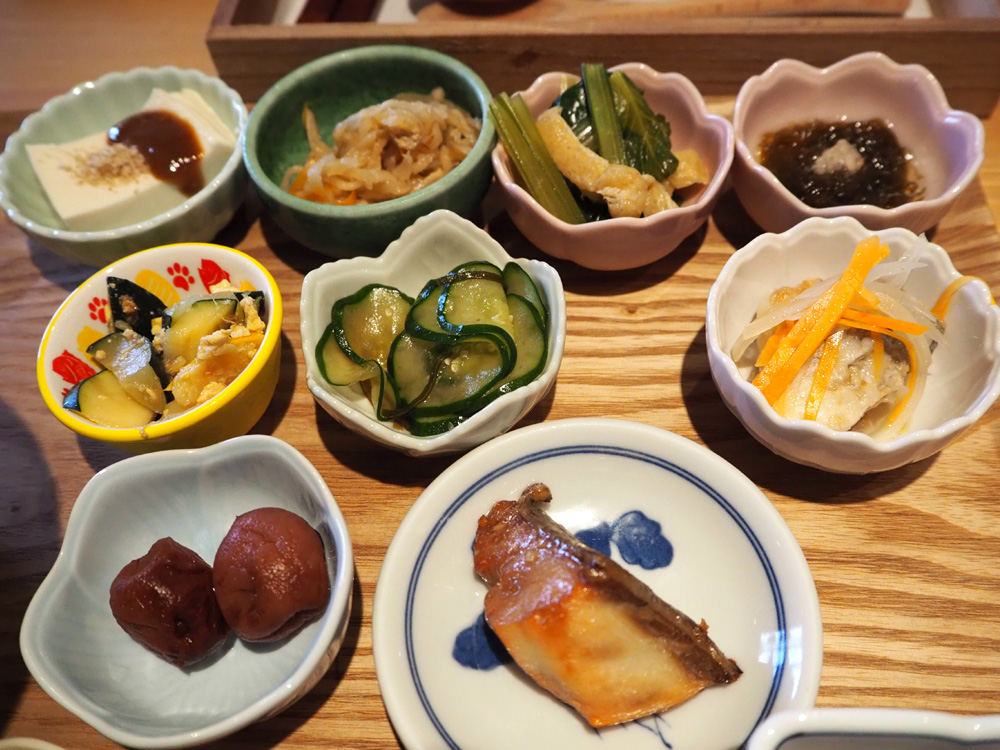 ランチメニューは、お粥御膳、お粥とお漬物(¥600)、糸島豚のトマトキーマカレー(¥1,200)の3種類でした。お粥御膳には、小鉢が12品も付いているのも嬉しいですよね。(日によって、小鉢の種類や数は変わるようです。)