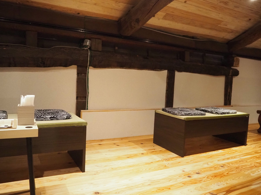 階段の上は小上がりスペースになっていて、スイーツメニューはこちらで頂くことが出来るそうです。(天井が低い場所なので、梁に頭をぶつけないようにお気を付けください。)