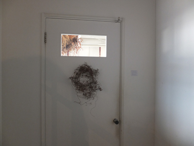 道路側には全く看板らしき物はありません。駐車場にある看板を頼りに建物に近づいてみると、事務所のようなドアが!こんなシンプルと言うより無機質な入口のカフェを見たのは初めてでした。