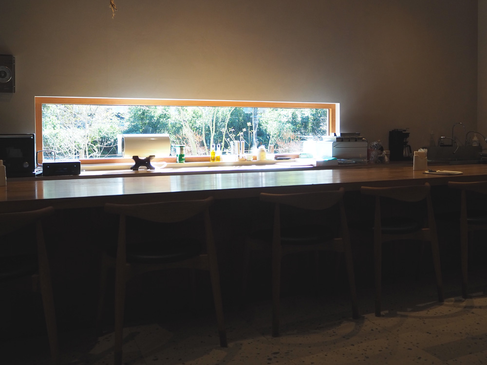 桜や紅葉で有名な秋月の山間に今年の3月にオープンした、土日のみ営業されるお洒落なカフェです。主要道路からは見えない場所にあるお店までの道はとても細い為、車は葡萄月前の有料駐車場に止めて歩いて向かいました。川沿いの遊歩道をのんびり5分程歩くと、真新しい建物が見えて来ます。3m近くありそうな大きな扉を開けると、天井が高くて開放感に溢れた空間が広がってました。カウンターから眺められる緑にも癒されますよね。カウンター席の他にテーブル席もありましたよ。(写真撮影の許可を快諾していただき、ありがとうございましたm(_ _)m。)