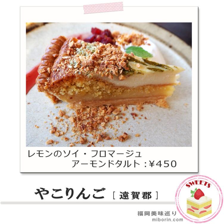 レモンのソイ・フロマージュ アーモンドタルト:¥450髙倉神社の目の前で木・金・土曜のみ営業の、「こころとからだにやさしい」お料理やスィーツが頂ける古民家カフェです。キビ糖やてんさい糖、菜種油などの身...