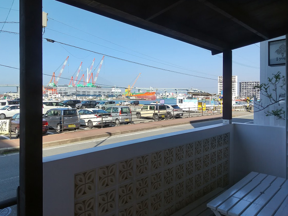 店外にはテラス席もあり、わんこ連れでの利用も可能とのこと。大濠公園駅から徒歩約7分、窓際の席からはタンカー等を造っている造船場や海が見えますよ。