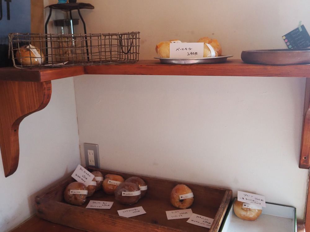 筑前町の住宅街の中にあるご自宅の一角で、土・日・月のみ営業されているベーグルと雑貨のお店です。初めて伺った為システムがよく分からなかったのですが、11時に開店されるとお店の方が番号札を配布されてました。店内は2人でいっぱいになる狭さなので、順番までは店外か車の中で待つことになります。この日は開店から30分くらいでほぼ完売状態だったので、確実にGETされたい方は事前予約をオススメします。この日の予約セットは、ベーコンチーズ、クランベリー、スイートポテト、プレーンの4個で950円でしたよ。