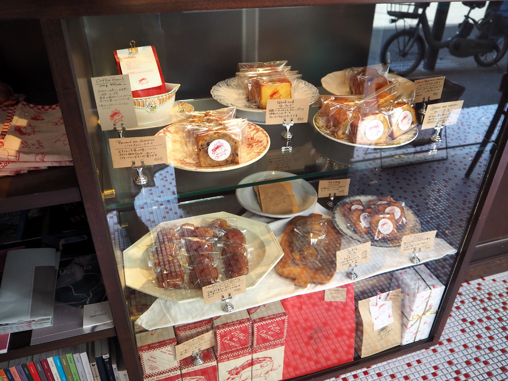 赤と白のモザイクタイルや店内の調度品も素敵でした。焼菓子はテイクアウトも可能ですよ。