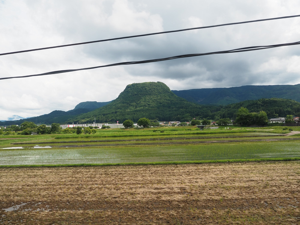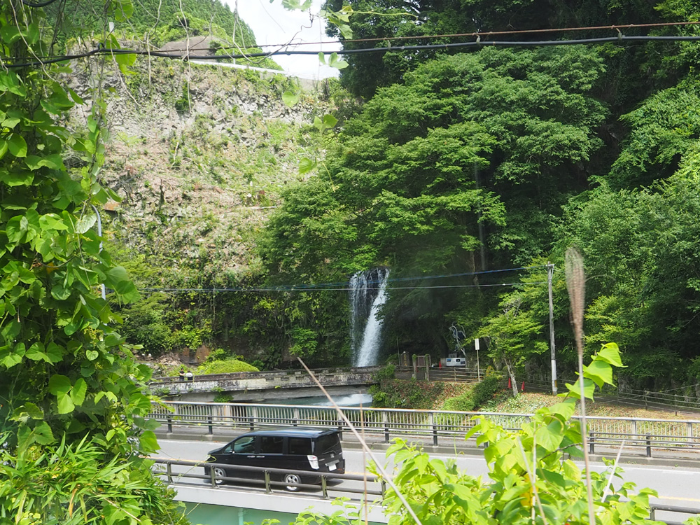 てっぺんが平らで切り株のような伐株山や慈恩の滝が見えるポイントでは、ゆっくり走ってくれますよ。