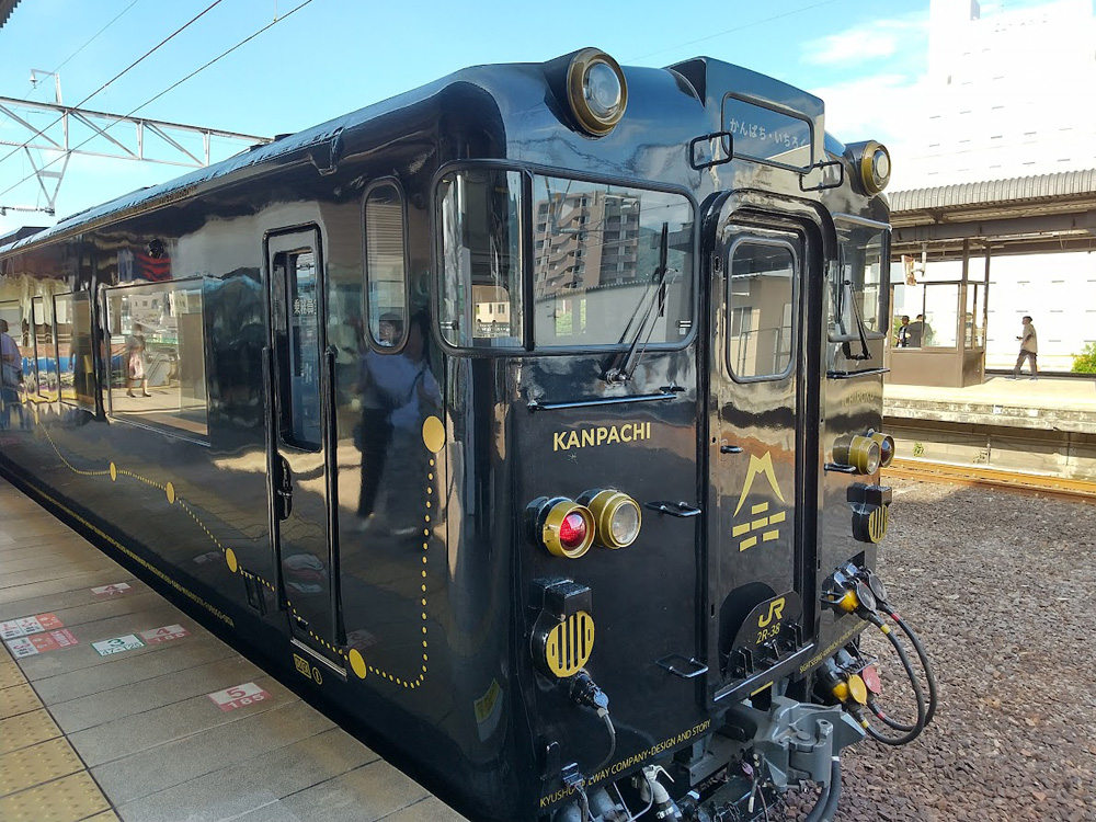 4月にデビューした、JR九州の新しいD&S列車「特急かんぱち・いちろく」に乗って来ました!月・水・土曜に、博多駅から別府駅まで約5時間かけて運行するのが「かんぱち号」、火・金・日曜に別府から博多に向かうのが「いちろく号」です。土曜のかんぱち号は、ほぼ満席でしたよ。