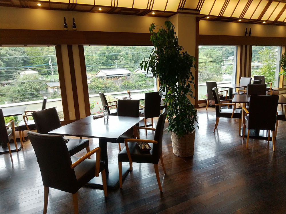 佐賀大和ICから車で約5分の場所にある、絶景ロケーションが人気のフレンチレストランです。勝手に洋風のお店を予想していたのですが、日本庭園「十可苑」に隣接されている為か、所々に和風な雰囲気もある不思議な造りの店内でした。こちらのランチは平日でも人気なので、予約されてから行かれることをオススメします。