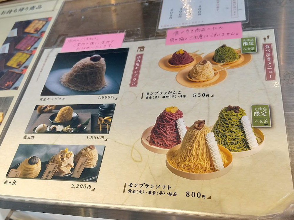 食べ歩きメニューも美味しそう♪2月末頃からは、苺モンブランの提供も始まるそうです。