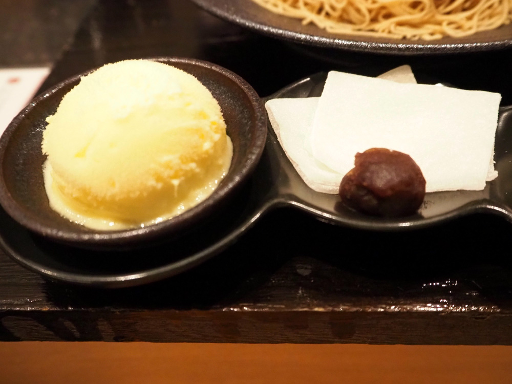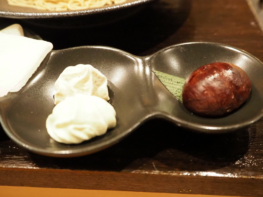 栗三昧には、栗の渋皮煮、ほうじ茶と抹茶のメレンゲ、求肥と餡子、塩アイスが付いていて、色んな食べ方が楽しめます。もちもち食感の求肥に包んで、粒餡と一緒に食べる食べ方が一番好きでした。焙じ茶や和紅茶などのお茶がセットになっているのも嬉しいですよね。