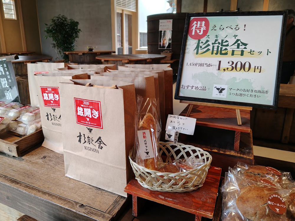 『蔵のパン酵房』では、「酒粕バゲット(1/2)」「地ビールパン」+好きなパンを3つ選べる「杉能舎セット」がオススメですよ。試食がたくさんあったのも嬉しかったです。(蔵のパン酵房は火曜も営業されてます。)