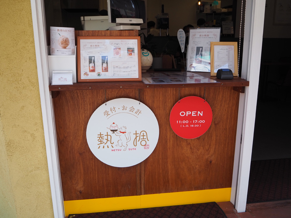 席を予約済でも、まずは受付での注文と会計が必要です。テイクアウトメニューの「飲む熱捨」も美味しそうでした。