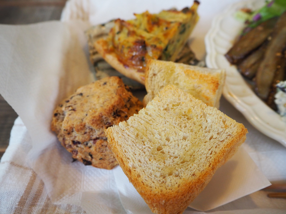 季節のお野菜をたっぷり使ったおそうざいプレートに、キッシュ、スコーン、パン、ドリンクも付いて盛り沢山な内容のピクニックランチは、野菜がどれも優しい味わいでとても美味しかったです。しっとり食感のスコーンは、テイクアウト用も販売されてました。