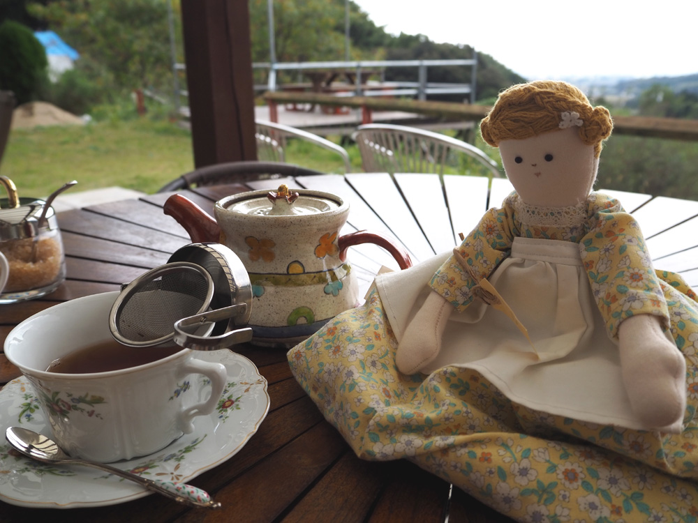 やっぱりこちらのティーポットカバーは可愛いです。(テラス席で撮影させていただきました。)