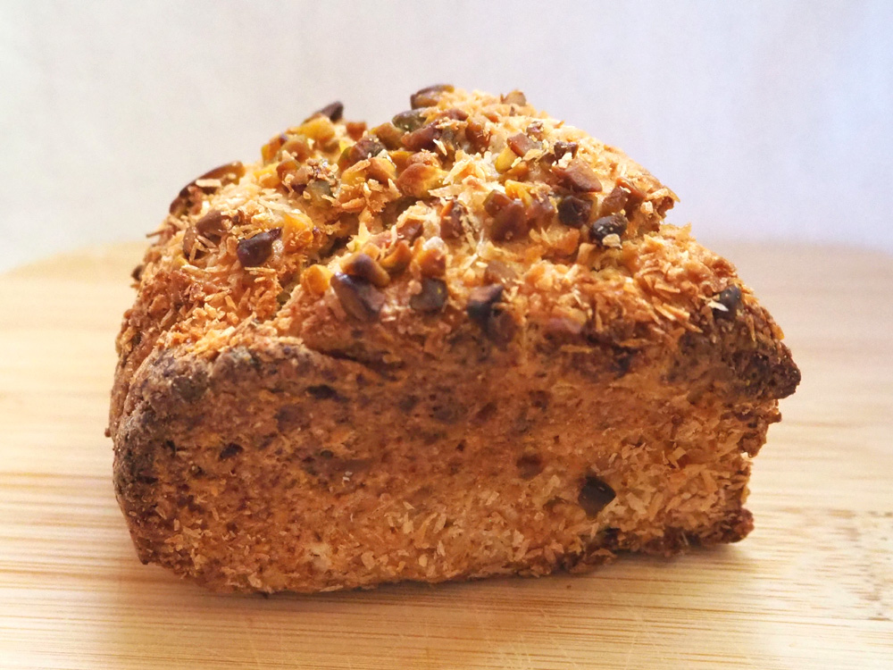 ココナッツとレモンピールのスコーンはザクザク食感でした。北海道産と福岡県産の小麦や白木牧場特別牛乳など、こだわりの素材を使って丁寧に作られたプレーンスコーンは、ふんわりしっとり食感を一番感じられますよ。