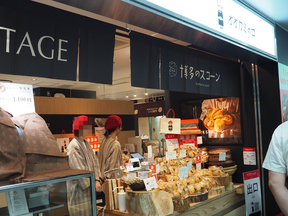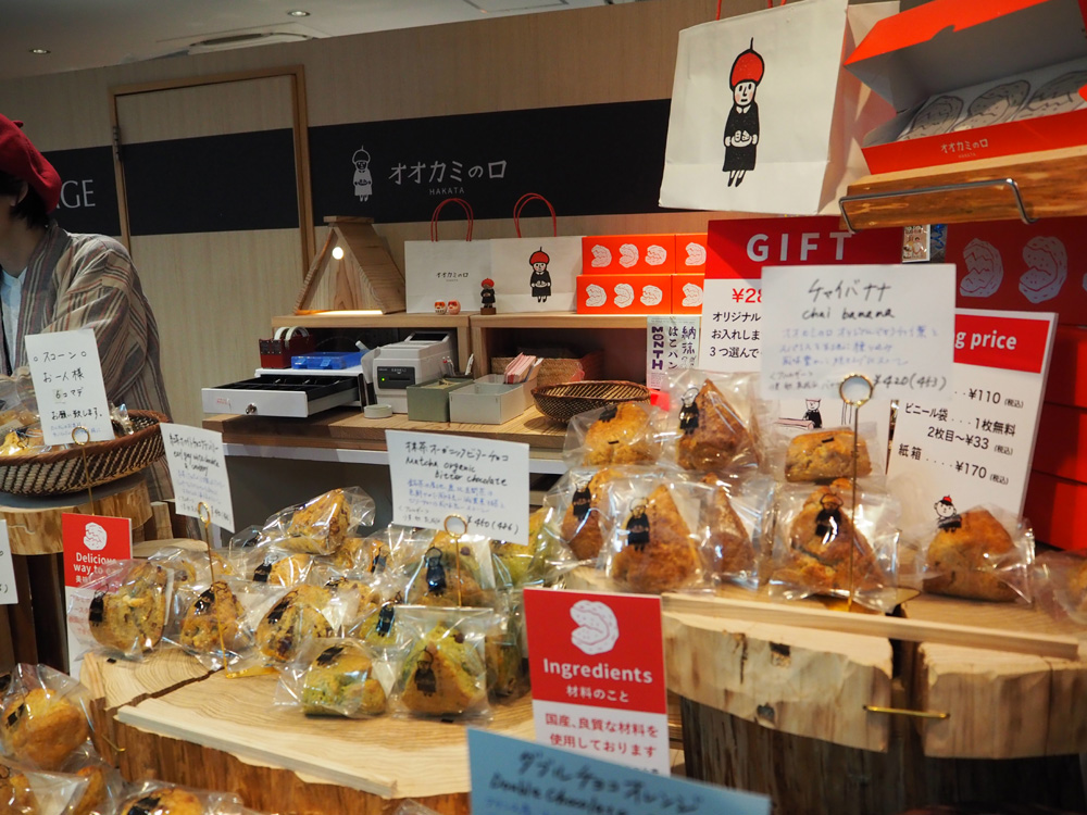 姪浜にあるスコーンとチャイが人気のカフェ「オオカミの口」の2号店が、博多駅のいっぴん通りの中にスコーン専門店として7月1日にオープンしました。本店で大人気のスコーンが買えるとあって、初日の開店前から行列が出来ていたそうです。この日は開店時間の8時を目指して行って無事にGET出来ましたが、10時前には売り切れそうな勢いでしたよ。スコーンは日に2回、本店から入荷されるようです。(現在、姪浜本店は一時休業中です。)