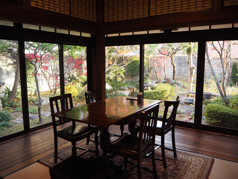 前原商店街の中にある、明治時代に建てられた豪商の町屋をリノベーションされた素敵なカフェです。築120年越えの建物は、歴史を感じる白壁の外観も天井が高くて趣のある店内も、どこを見てもお洒落な空間でした。広い三和土で靴を脱いで店内に上がり、畳敷きの部屋にテーブル席が配置された喫茶室へ。お庭が眺められる素敵な席に案内してもらえて気分も上がりまくりでした。(写真撮影の許可を快諾していただき、ありがとうございましたm(_ _)m。)