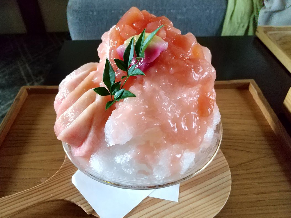 8月31日(日)まで提供される「桃とミルクのかき氷」は、国産桃がふんだんに使用された贅沢な一品です。ジューシーで甘いフレッシュな桃はもちろん、氷にかけられている桃と白餡のソースも、優しい甘さで美味しかったです。かき氷の中にも、ミルクシロップ、モッチリ食感の信玄餅などが入っていて、食べ進めるうちに色々な味が楽しめて大満足できました。