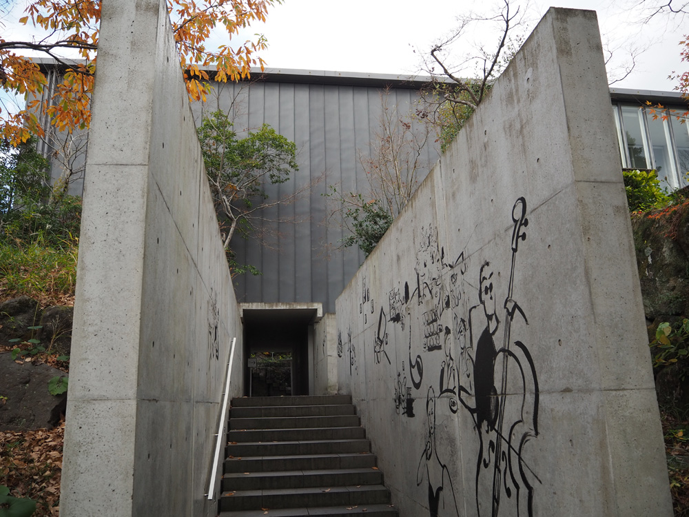 カフェはミュージアム「artegio(アルテジオ)」に併設されてます。お洒落なイラストが描かれたコンクリート壁の間の通路に期待が高まりまくりでした。