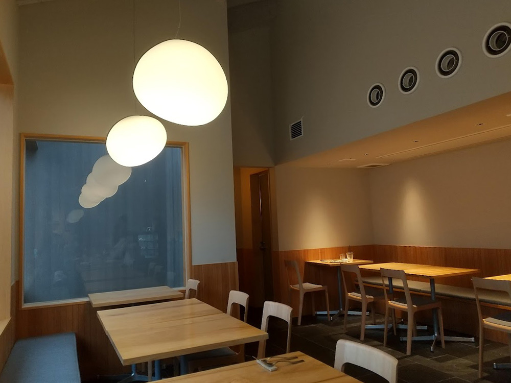 太宰府天満宮の参道から横道に入った場所に2月にオープンした、ツートーンチーズケーキが人気のお洒落なカフェです。ベーカリー・鮨店・カフェが入る『NISHIKIMACHI』の中にあります。大きな窓に面した明るい店内は、木目とグレーでまとまっていて落ち着ける空間でした。天井から吊された卵のような形状のライトも素敵でしたよ。(写真撮影の許可を快諾していただき、ありがとうございましたm(_ _)m。)