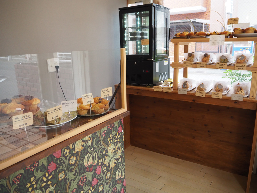 大手門のバス通りから細い小道に入った場所にオープンした、久留米に本店があるマフィンやスコーンがメインの焼菓子のお店です。地下鉄・大濠公園駅4番出口から徒歩約2分、レンガ調の外観が目印のビルの1階にあります。こちらのお店はテイクアウト専門で、商品は久留米店から運ばれて来るそうですよ。(写真撮影の許可を快諾していただき、ありがとうございましたm(_ _)m。)